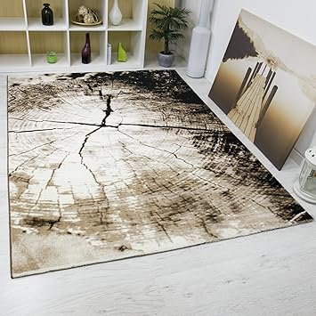 Moderner Wohnzimmer Teppich Braun Beige Baumstumpf Holz Optik Top